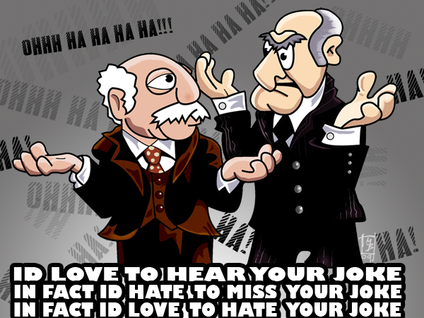 The Muppet’s Statler and Waldorf, two of my favourite characters. Heckling the cast of the Muppet Show from their box seats because they have nothing better to do. Their senile, yet sharp and witty, and always get a laugh. This work is licensed under a Creative Commons Attribution-NonCommercial-NoDerivs 3.0... Read More ››
